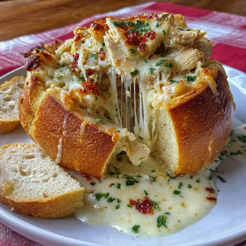 Chicken Alfredo Garlic Bread Bowls