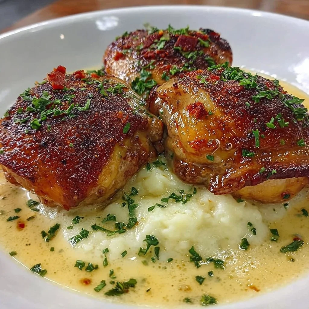 Lemon Herb Twist: Squeeze fresh lemon juice over the chicken before serving for an added brightness and freshness that complements the crispy skin beautifully.